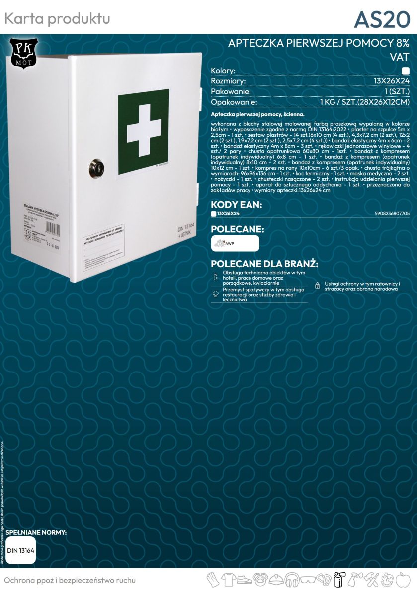 - instrukcja udzielania pierwszej pomocy – 1 szt.