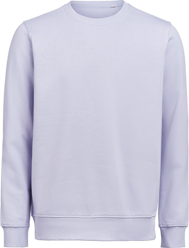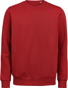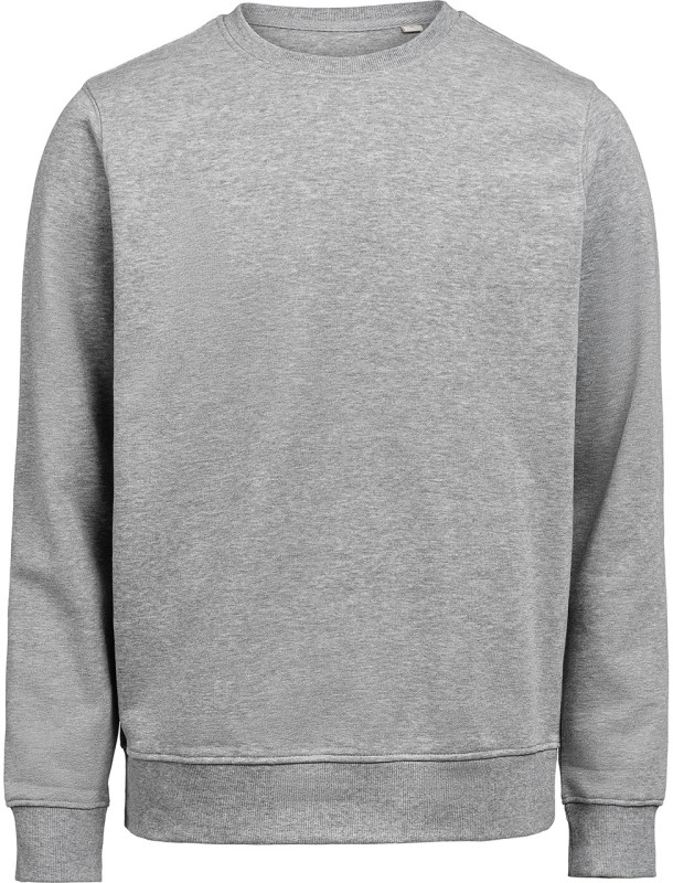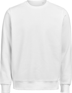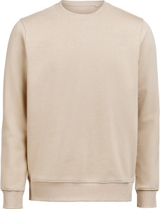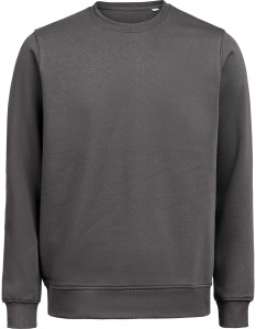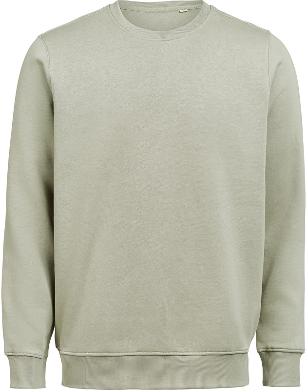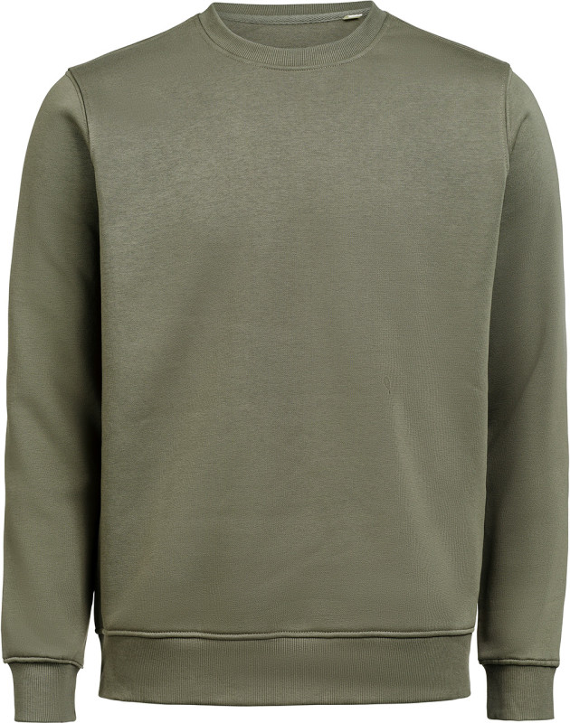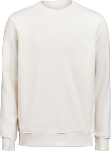 Bluza (unisex) z okrągłym dekoltem została wykonana z mieszanki 80% bawełny organicznej i 20% poliestru z recyklingu, oferując miękki, wygodny krój przy gramaturze 350 g/m². Wyposażona w ściągaczowy kołnierzyk, mankiety i dół w splocie 2×1. Bluza została poddana praniu enzymatycznemu, co nadaje jej gładką, delikatnie „noszoną” strukturę.