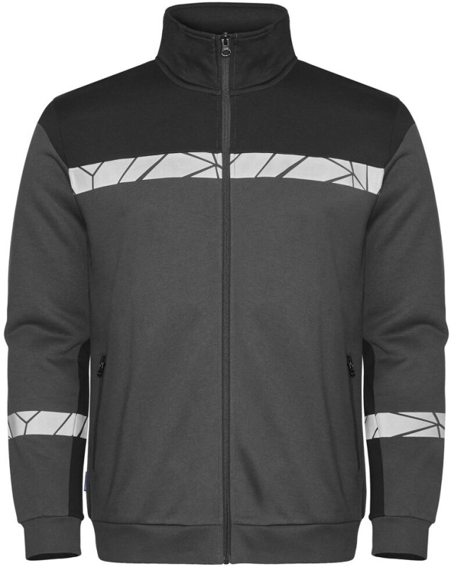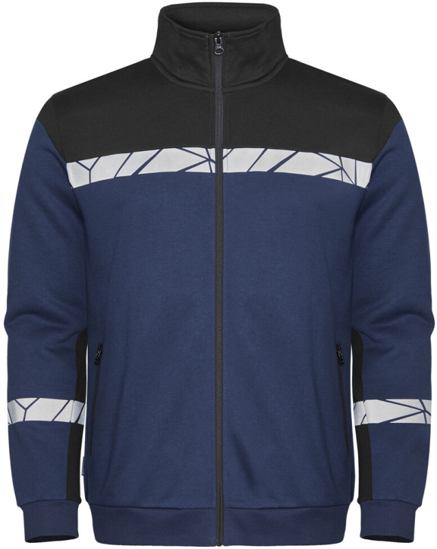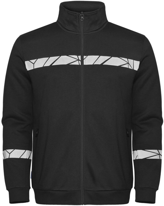 Bluza z zamkiem z przodu. Wnętrze wykończone drapaną tkaniną, zapewniającą przyjemne i miękkie odczucie. Kieszeń po lewej stronie z zamkiem błyskawicznym. Kontrastowa taśma przy dekolcie. 2×2 ściągacze przy mankietach i na dole bluzy. Kieszonka na metkę w wewnętrznej lewej szwie.