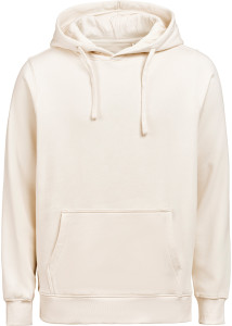 Bluza z kapturem (unisex) wykonana z mieszanki 80% bawełny organicznej i 20% poliestru z recyklingu, oferując miękki i wygodny krój przy gramaturze 350 g/m². Wyposażona w regulowany kaptur ze sznurkiem, ściągaczowe mankiety i dół w splocie 2×1. Bluza została poddana praniu enzymatycznemu, co nadaje jej gładką, przyjemną w dotyku strukturę o subtelnie „noszonym” wyglądzie.