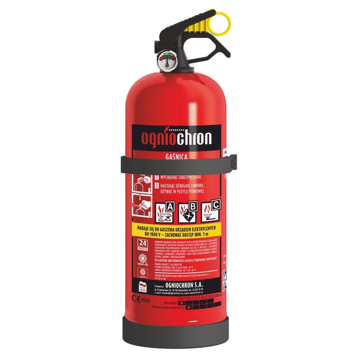 Gaśnica proszkowa 2 kg zaprojektowana dla zabezpieczenia samochodów dostawczych i ciężarowych, w obiektach użyteczności publicznej, pomieszczeniach biurowych, produkcyjnych, magazynach, garażach. Łatwa w obsłudze, zapewnia szybkie i skuteczne gaszenie. Zawór odcinający i wskaźnik ciśnienia ułatwiający kontrolę i obsługę serwisową. Zawór skonstruowany tak, aby umożliwić czasowe przerwanie gaszenia. Zbiornik nie podlega kontrolnym badaniom UDT. Możliwość wielokrotnego napełniania. Zbiornik pokryty poliestrową farbą odporną na promieniowanie UV, wewnątrz powłoka antykorozyjna. Skuteczność gaszenia 13A 89B C, czas działania 9 s. Zakres temperatur stosowania -30OC – +60OC. Nadaje się do gaszenia urządzeń elektrycznych do 1000V.Zgodna z ISO 9001. Spełnia wymagania normy europejskiej EN3 oraz Dyrektywy bezpieczeństwa PED 2014/68/UE. Produkt polski.