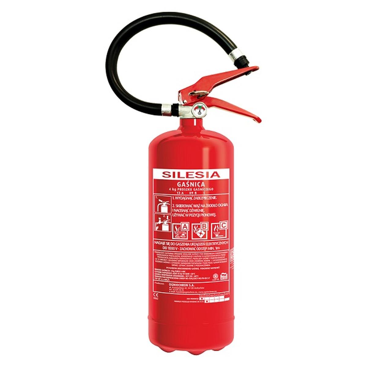 Gaśnica proszkowa 4 kg zaprojektowana dla zabezpieczenia obiektów użyteczności publicznej, pomieszczeń biurowych, produkcyjnych, magazynów, garaży. Doskonale sprawdza się w transporcie samochodowym, kolejowym i wodnym. Znajdzie również zastosowanie jako gaśnica do kotłowni lub garażu. Łatwa w obsłudze, zapewnia szybkie i skuteczne gaszenie. Zawór odcinający i wskaźnik ciśnienia ułatwiający kontrolę i obsługę serwisową. Zawór skonstruowany tak, aby umożliwić czasowe przerwanie gaszenia. Zbiornik nie podlega kontrolnym badaniom UDT. Możliwość wielokrotnego napełniania. Zbiornik pokryty poliestrową farbą odporną na promieniowanie UV, wewnątrz powłoka antykorozyjna. Skuteczność gaszenia 13A 89B C, czas działania 12 s. Zakres temperatur stosowania -30OC – +60OC. Nadaje się do gaszenia urządzeń elektrycznych do 1000V. Może być stosowana w górnictwie (opinia CSRG nr 26/2008). Wyposażona w mocowania do zwieszania na wieszaku zaczepowym. Zgodna z ISO 9001. Spełnia wymagania normy europejskiej EN3 oraz Dyrektywy bezpieczeństwa PED 2014/68/UE. Produkt polski.