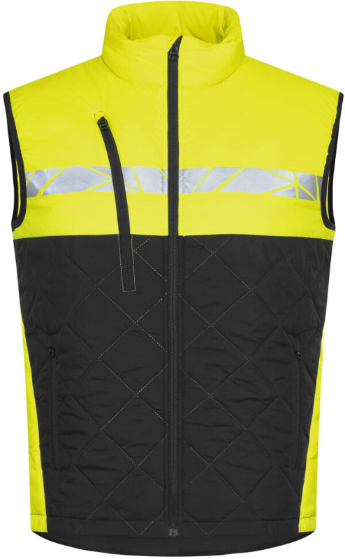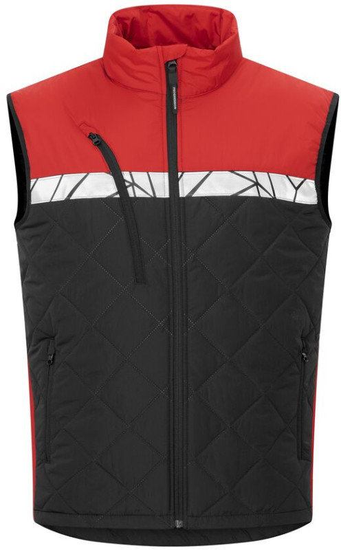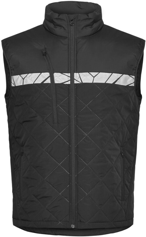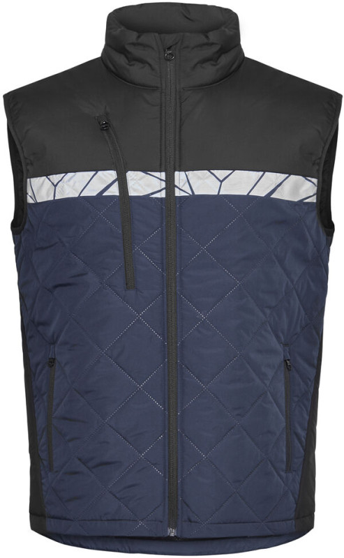 Kamizelka z lekkiego, bezszwowego materiału pikowanego w romby. Kieszeń na piersi po prawej stronie z zamkiem błyskawicznym oraz wewnętrznym uchwytem do przypięcia identyfikatora. Boczne kieszenie po obu stronach, również zapinane na zamek. Kieszonka na chip do prania w wewnętrznym lewym szwie bocznym.