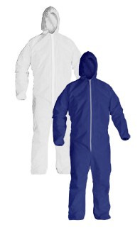 Kombinezon z włókniny polipropylenowej z kapturem. Ściągacz elastyczny w pasie, w kostkach i w nadgarstkach. Kombinezon zapinany na zamek błyskawiczny.