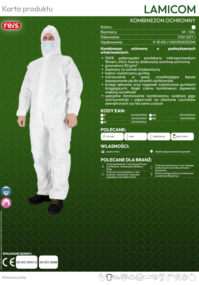 • specjalne laminowanie kombinezonu zwiększa jego wytrzymałość i odporność na działanie czynników zewnętrznych czy też samo zużycie