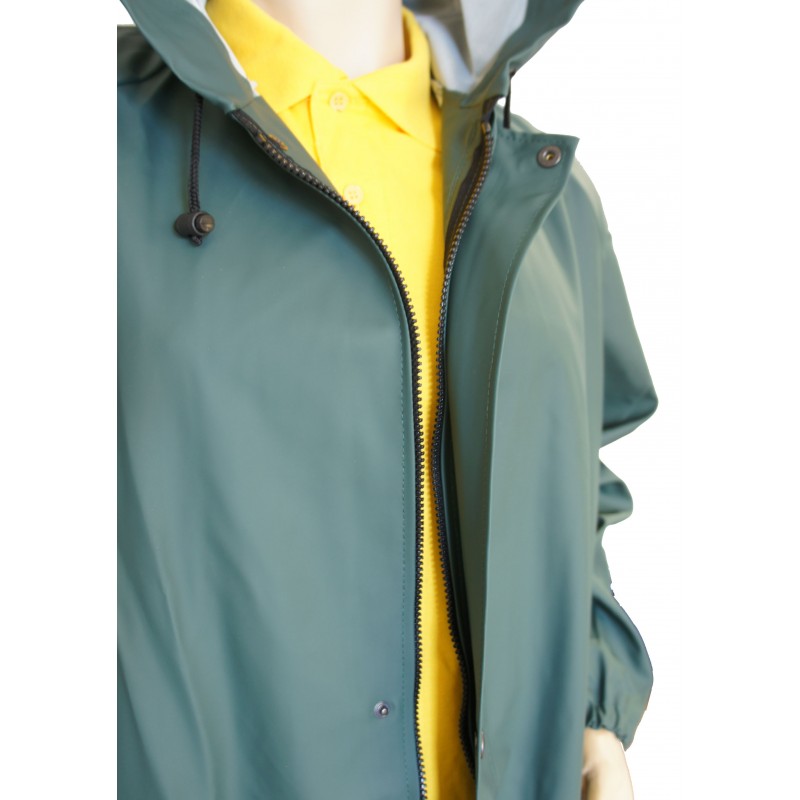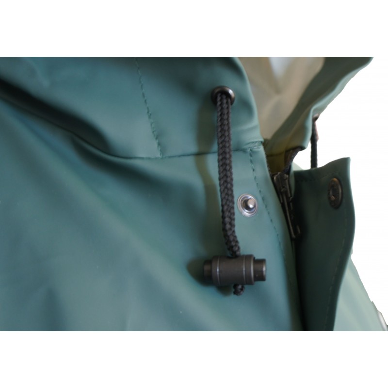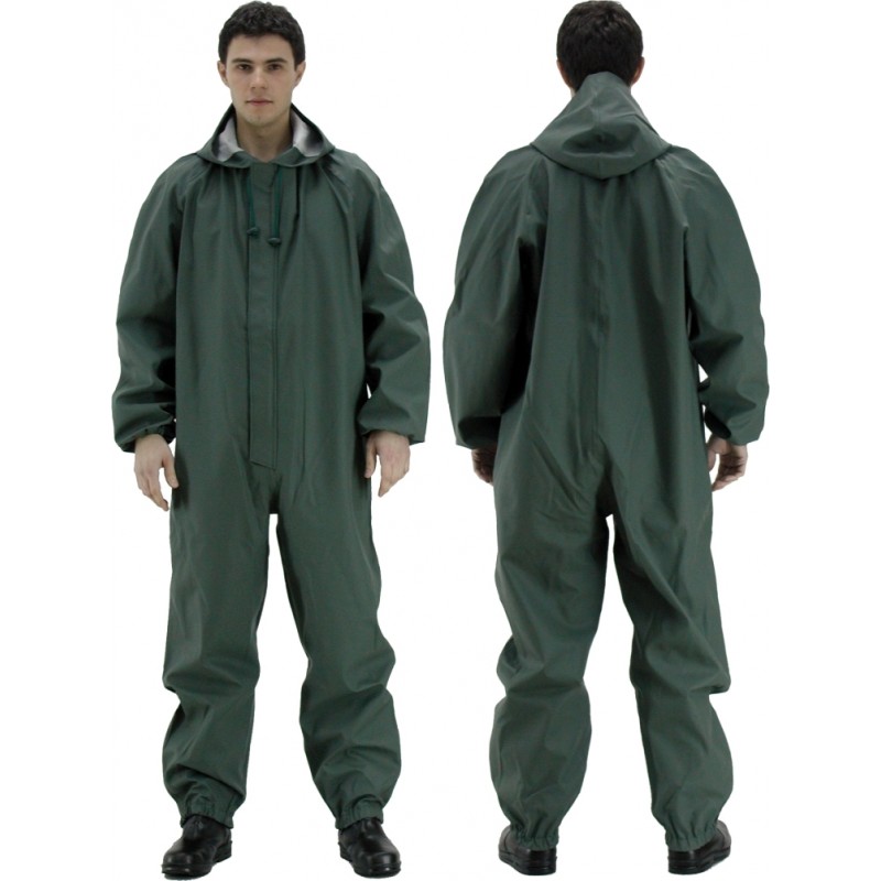 Kombinezon wodoochronny wykonany z dzianiny poliestrowej powleczonej polichlorkiem winylu, o masie powierzchniowej 350 g/m2 – odpornej na zginanie w niskich temperaturach (do – 50 st. C). Jednoczęściowy kombinezon, zapinany na zamek kostkowy, przykryty plisą zapinaną na zatrzaskowe napy.