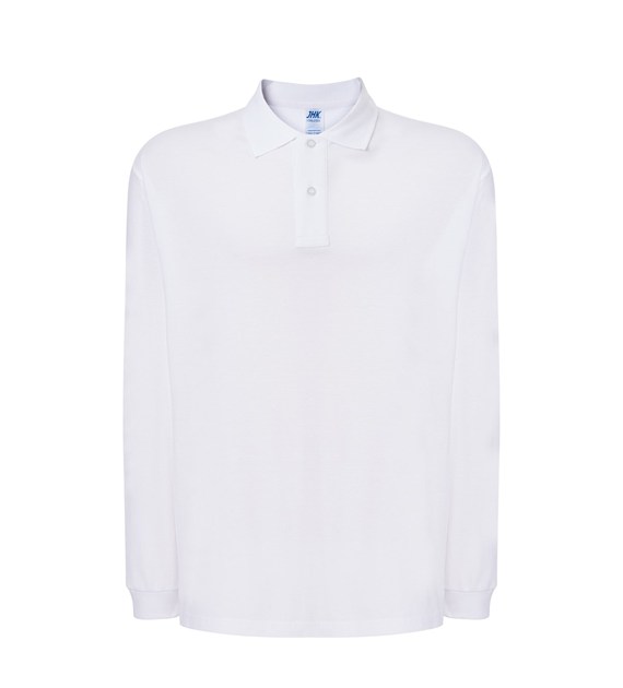 Polo męskie z długim rękawem. Zapinane na dwa guziki. Boczne rozcięcia. Dłuższe na pleach. Łatwo usuwalna metka. 100% stabilizowana bawełna czesankowa pique.