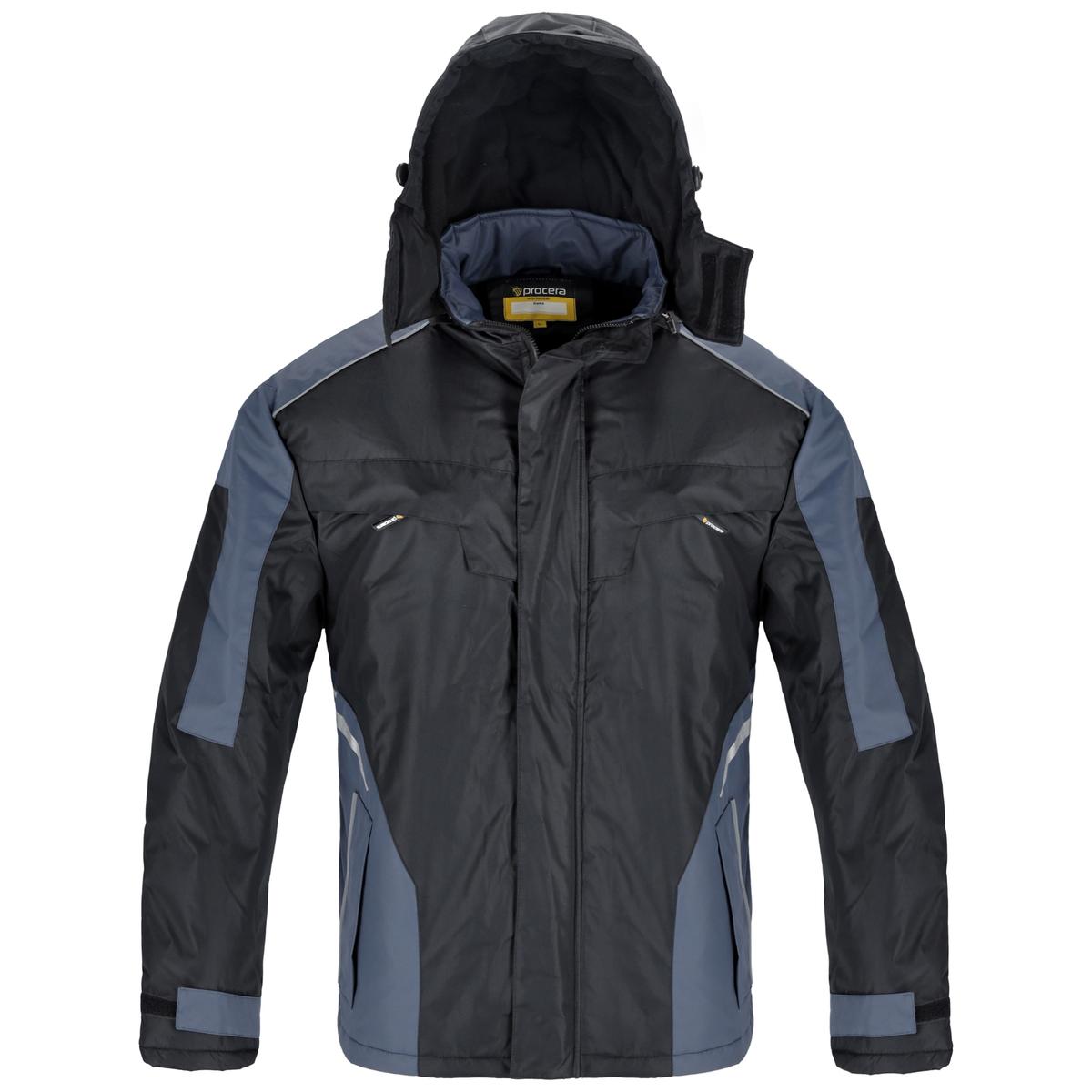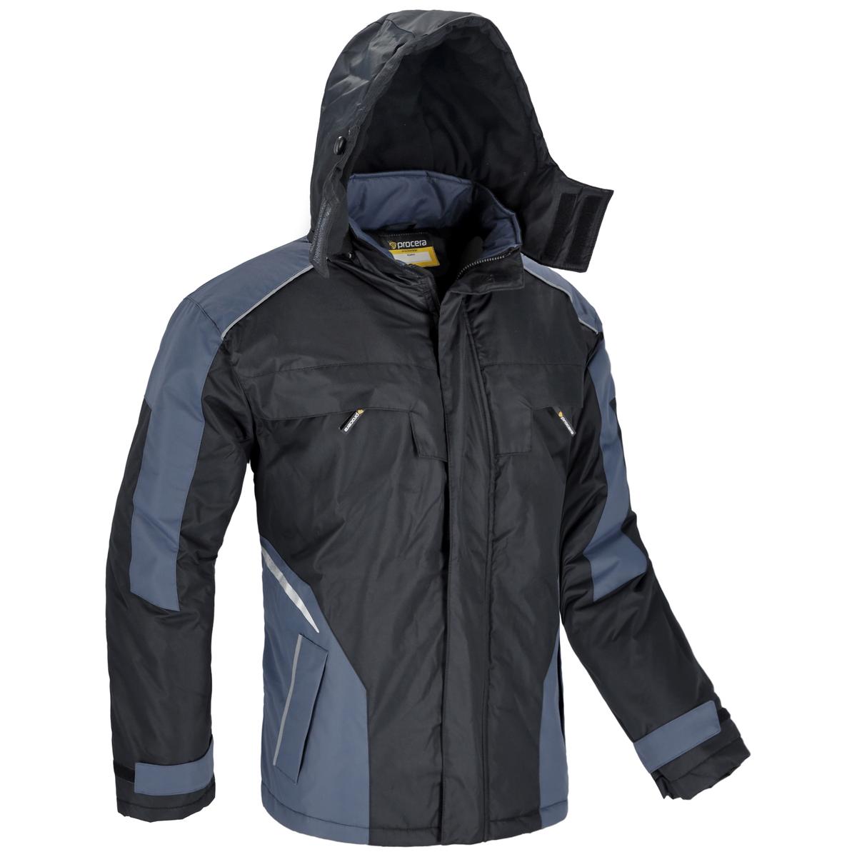 Kurtka wykonana w 100% z trwałego poliestru, ocieplana od wewnątrz polarem, zasuwana na zamek błyskawiczny osłonięty zapinaną listwą na rzepy. Posiada dwie kieszenie na klatce piersiowej oraz dwie kieszenie dolne zapinane na zamek błyskawiczny i osłonięte klapami, a także małą kieszeń od strony wewnętrznej zapinaną na rzep. Rękawy zapinane na rzep z możliwością regulacji. Odsuwany kaptur ocieplany polarem, ściągany za pomocą troczków, posiada dodatkowe zapięcie na rzep dzięki czemu głowa jest lepiej chroniona przed zimnem i warunkami atmosferycznymi. Dół kurtki z regulacją obwodu. Rozmiary: S – XXXL. Pakowanie: 1/10 karton.