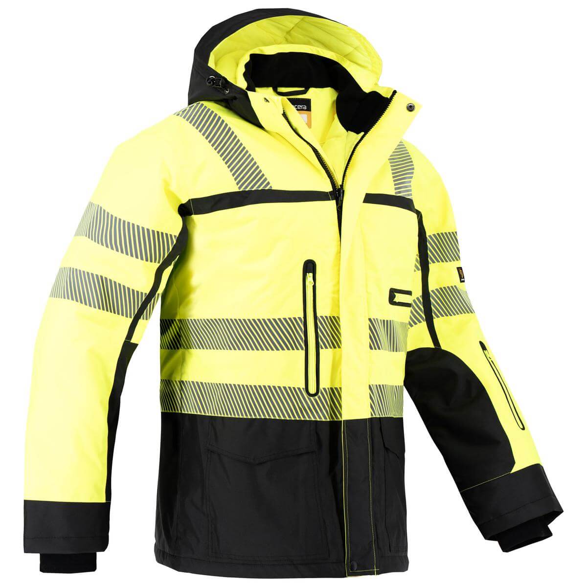 Kurtka ocieplana LAGARTO wykonana z wodoodpornego materiału OXFORD (100% poliester impregnowany wewnętrznie PU). Zasuwana na zamek błyskawiczny osłonięty listwą na napy. Wiele funkcjonalnych kieszeni w tym kieszenie zewnętrzne: dwie na klatce piersiowej zapinane na zamek, dwie dolne osłonięte klapami na rzep, kieszeń na rękawie a także kieszeń piersiową od strony wewnętrznej. Odpinany ocieplany kaptur ze ściągającymi gumkami i stoperami dla pełnej regulacji i najlepszego dopasowania. Wysoki kołnierz chroniący przed wiatrem z wewnętrznym miękkim polarowym obszyciem. Mankiety zakończone miękkim wewnętrznym ściągaczem. Pikowana poliestrowa podszewka. Nieprzemakalne szwy uszczelnione taśmą. Rozmiary: S-XXL. Kolory: Czarny/Żółty. (UE) 2016/425 Kategoria I – tylko do minimalnych zagrożeń.