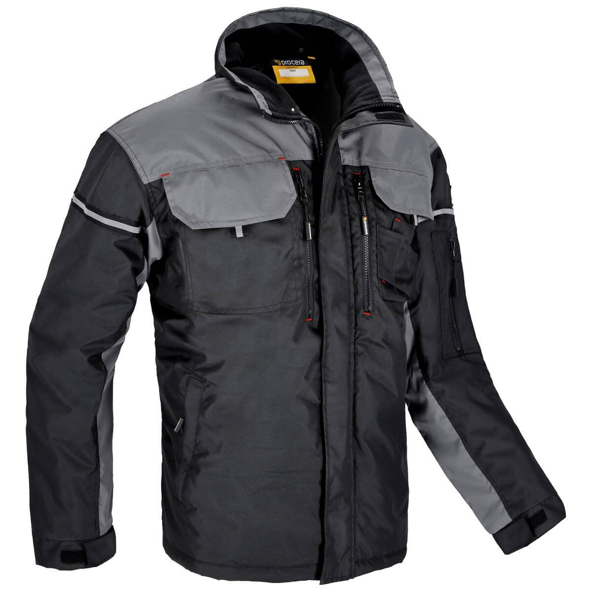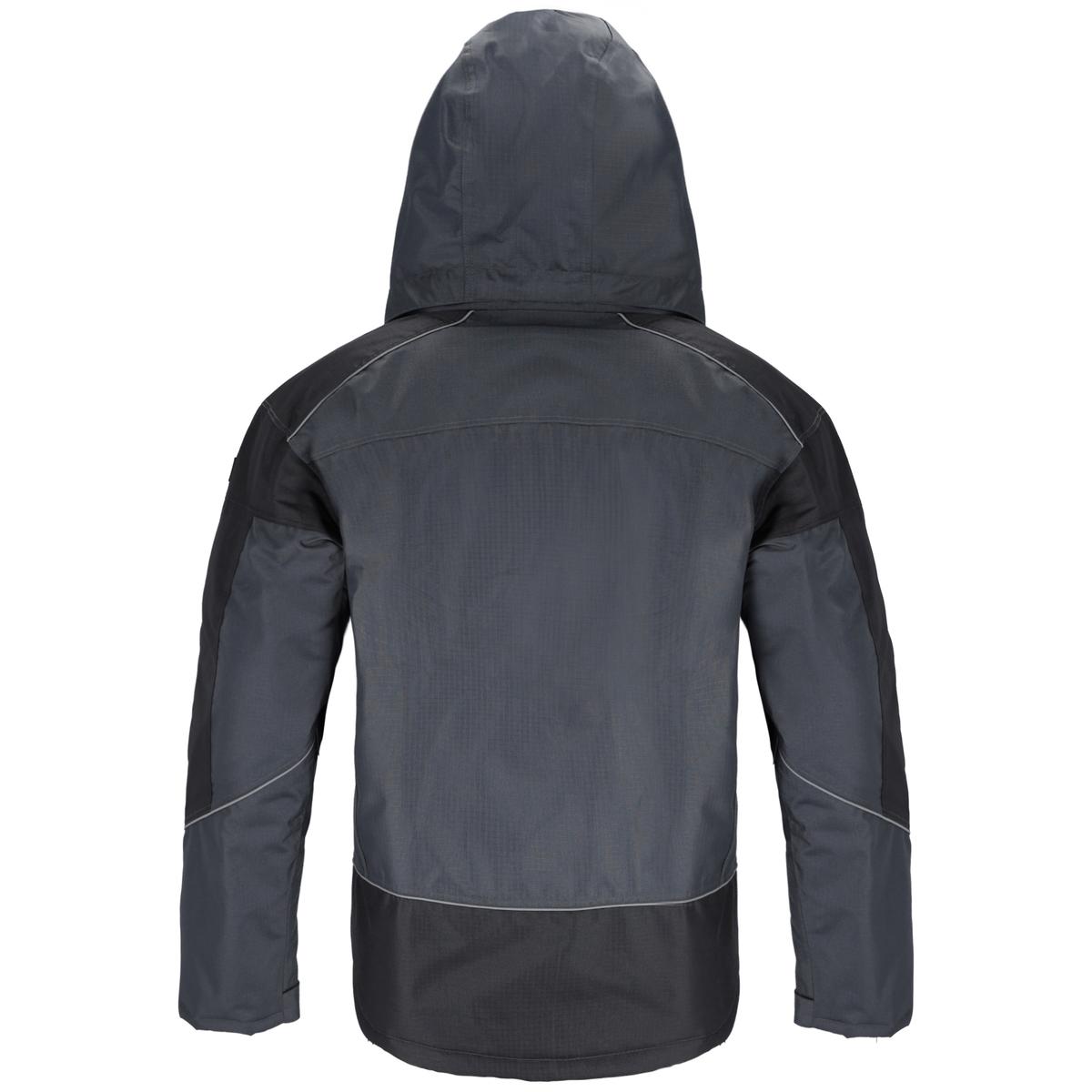 Kurtka ocieplana z poliestrową podszewką oraz warstwą zewnętrzną wykonaną w 100% z impregnowanego poliestru. Zasuwana na zamek błyskawiczny osłonięty listwą na rzepy. Posiada pięć kieszeni na klatce piersiowej – w tym dwie osłonięte klapami na rzep, dwie zasuwane na zamek błyskawiczny oraz kieszeń na akcesoria, dwie kieszenie dolne zapinane na suwak, a także kieszeń od strony wewnętrznej oraz wygodną kieszeń na rękawie zapinaną na suwak. Rękawy z regulacją na rzep. Stójka kołnierza wypodszewkowana polarem dla większego komfortu. Kolor: czarny/szary. Rozmiary: S- XXXL. Pakowanie: 1/10 karton.