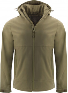 Wiatro i wodoodporny softshell. Zapinany na zaklejony (ukryty), wodoodporny zamek z przodu i w bocznych kieszeniach. Wewnętrzna kieszeń z zamkiem po lewej stronie. Odczepiany kaptur. Regulowane zapięcie na rzep u dołu rękawów. Kaptur i szew regulowane za pomocą elastycznych sznurków. Ukryte podejście zapinane na zamek błyskawiczny od wewnątrz do wykonania aplikacji/haftu.