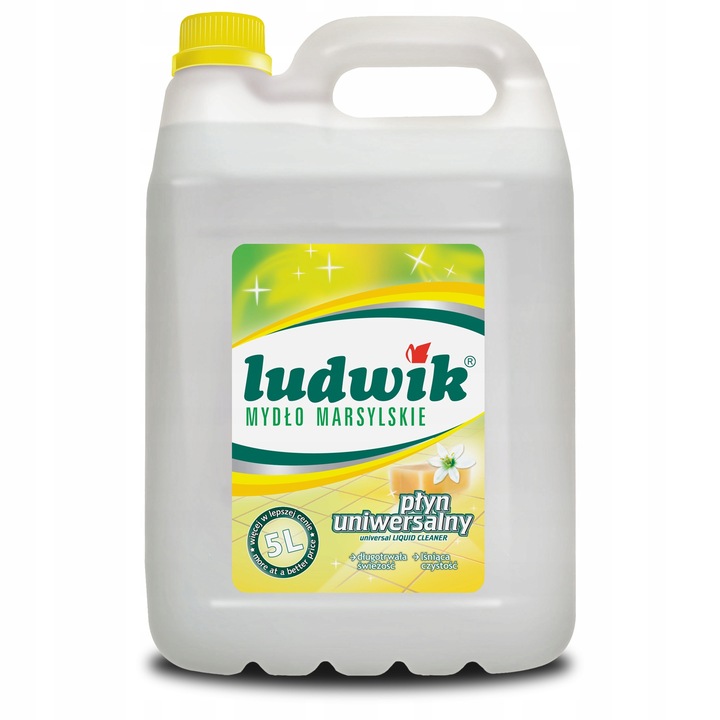 Ludwik uniwersalny płyn do czyszczenia z mydłem marsylskim nadaję się do mycia wszystkich powierzchni zmywalnych w całym domu. Skutecznie usuwa brud i tłuszcz. Zapewnia czystość i połysk bez smug. Pozostawia świeży zapach białych kwiatów.