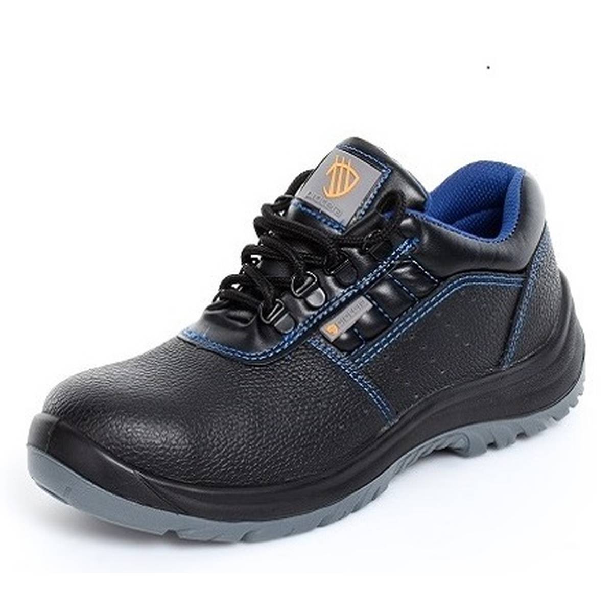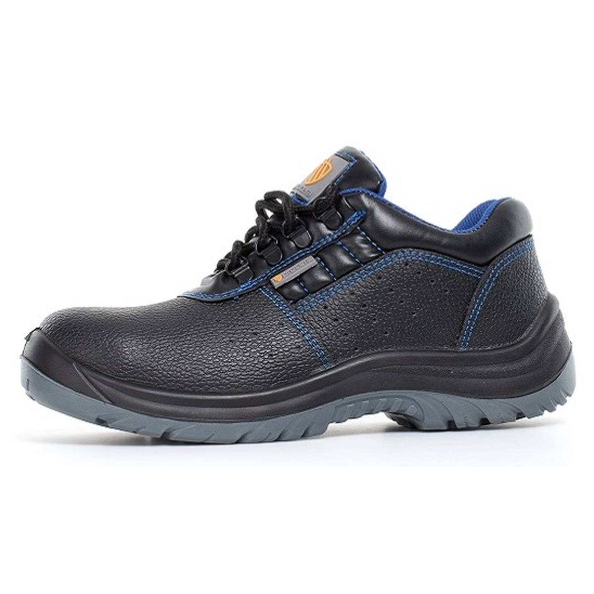 Półbuty bezpieczne EVO z metalowym podnoskiem ochronnym. Cholewka obuwia wykonana jest ze skóry dwoinowej. Podeszwa z dwuwarstwowego poliuretanu PU/PU, antyelektrostatyczna. Absorpcja energii w części piętowej. Podeszwa antypoślizgowa. Wstawki z materiałów syntetycznych. Wyściółka w kolorze niebieskim z materiałów o właściwościach higroskopijnych. Perforacja cholewki w części bocznej zapewniająca oddychanie stopie. Głęboki protektor zapewniają wysoką stabilność obuwia i komfort chodzenia. Kategoria S1.