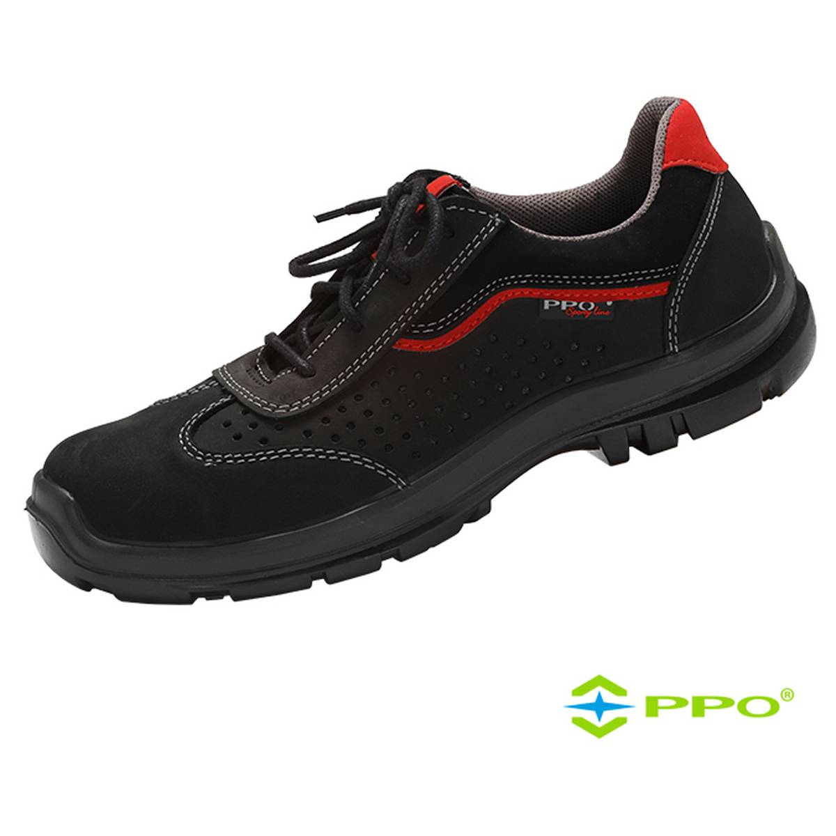Półbuty PPO-502 S1P SRC Cholewki wykonane z wysokiej jakości skór nubukowych o wysokim współczynniku przepuszczalności pary wodnej. Podszewka z antybakteryjnego materiału Coolmax® skutecznie odprowadzającego pot, gwarantującego uczucie suchości i komfortu. Lekka, innowacyjna, sportowa podeszwa SportyLine® z dwuwarstwowego poliuretanu PU/PU odporna na oleje, benzynę i inne rozpuszczalniki organiczne. Bardzo dobre właściwości przeciwpoślizgowe – specjalne urzeźbienie podeszwy – systemy Step Lock® i Traction Grid® gwarantują wysoką stabilność podeszwy i wysoką ochronę przed poślizgiem, pochłania energię w części piętowej, trwałe i wytrzymałe, skutecznie łagodzą nierówności podłoża. Posiada lekki kompozytowy podnosek chroniący przed uderzeniami z energią do 200J z niemetalową wkładką antyprzebiciową chroniącą przed przekłuciem od podłoża z siłą do 1100N. Wysokiej jakości materiały i zastosowana perforacja zapewniają bardzo dobrą wentylację i właściwości higieniczne obuwia. Wyposażone w miękką, wygodną, przyjazną skórze stopy, higroskopijną wyściółkę z filtrem aktywnego węgla o właściwościach przeciwgrzybicznych, przeciwpotnych i antybakteryjnych, co zapewnia stopie neutralny zapach, uczucie suchości i przyjemnego chłodu. Wyściółka nadaje się do wielokrotnego prania antyelektrostatyczne amagnetyczne, nie zawiera metali. Obuwie produkowane jest w numeracji francuskiej w rozmiarach od 36 do 48. Certyfikowane przez polską jednostkę notyfikowaną. Wysokiej jakości produkt polski.