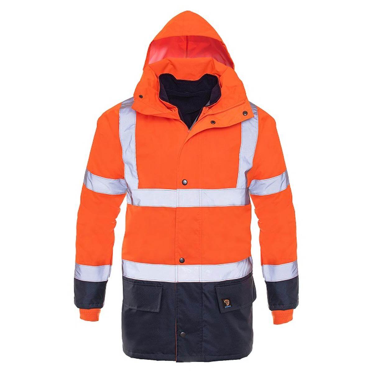 Całoroczna kurtka PROLUMO 5w1 jest zaprojektowana w taki sposób, aby było możliwe jej komfortowe użytkowanie przez cały rok. Zestaw można łatwo rozdzielić. Kurtka zewnętrzna jest wyposażona w dwie duże kieszenie boczne oraz składany kaptur ukryty w kołnierzu, szwy taśmowane, innowacyjne wykończenie powodujące spływanie wody, dwustronny zamek błyskawiczny. Materiał zewnętrzny: 100% poliester, Splot Oxford, plamoodporne wykończenie, powleczenie PU 190g/m2, podszewka: 100% poliester siatkowany 60g/m2. Kurtka wewnętrzna posiada 2 kieszenie boczne oraz odpinane, polarowe rękawy, dzięki czemu kurtka może pełnić rolę bezrękawnika. Materiał kurtki wewnętrznej: polar poliestrowy 280g/m2. Możliwość noszenia zestawu w 5 różnych wariantach w zależności od warunków pogodowych! Normy: (UE) 2016/425 , materiał i pasy odblaskowe testowane zgodnie z normą EN ISO 20471. Kategoria I – tylko do minimalnych zagrożeń.