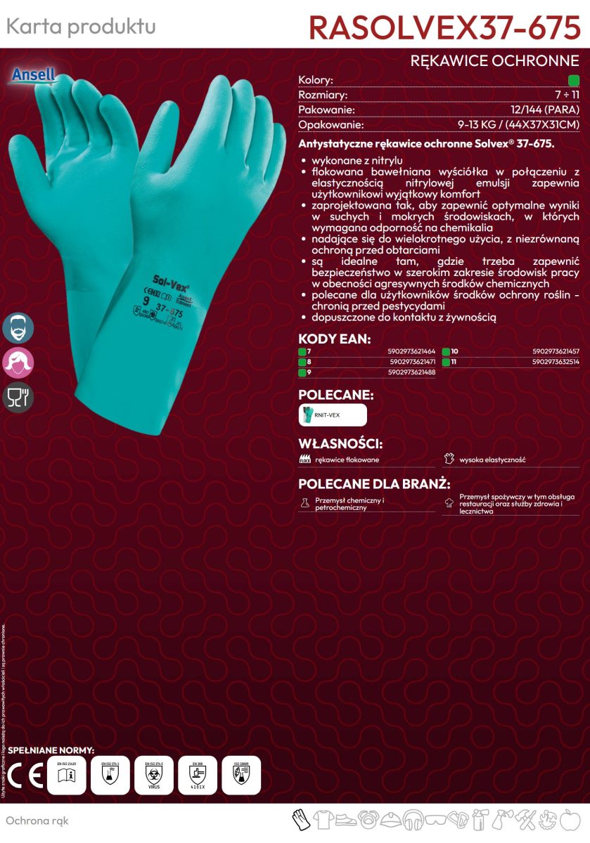 Antystatyczne rękawice ochronne Solvex® 37-675.