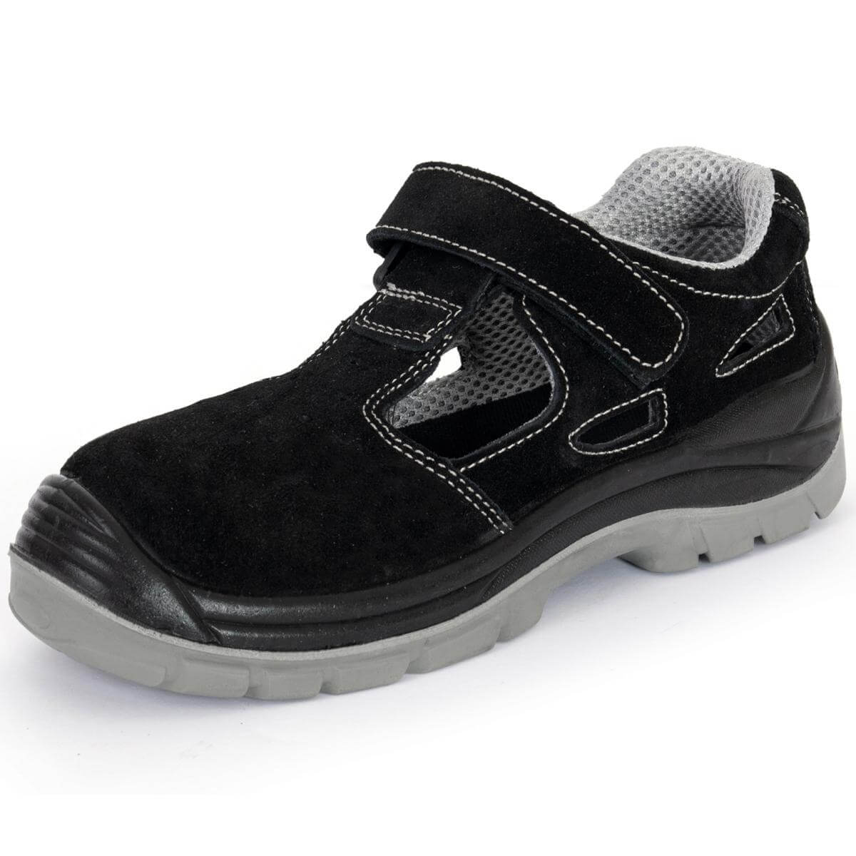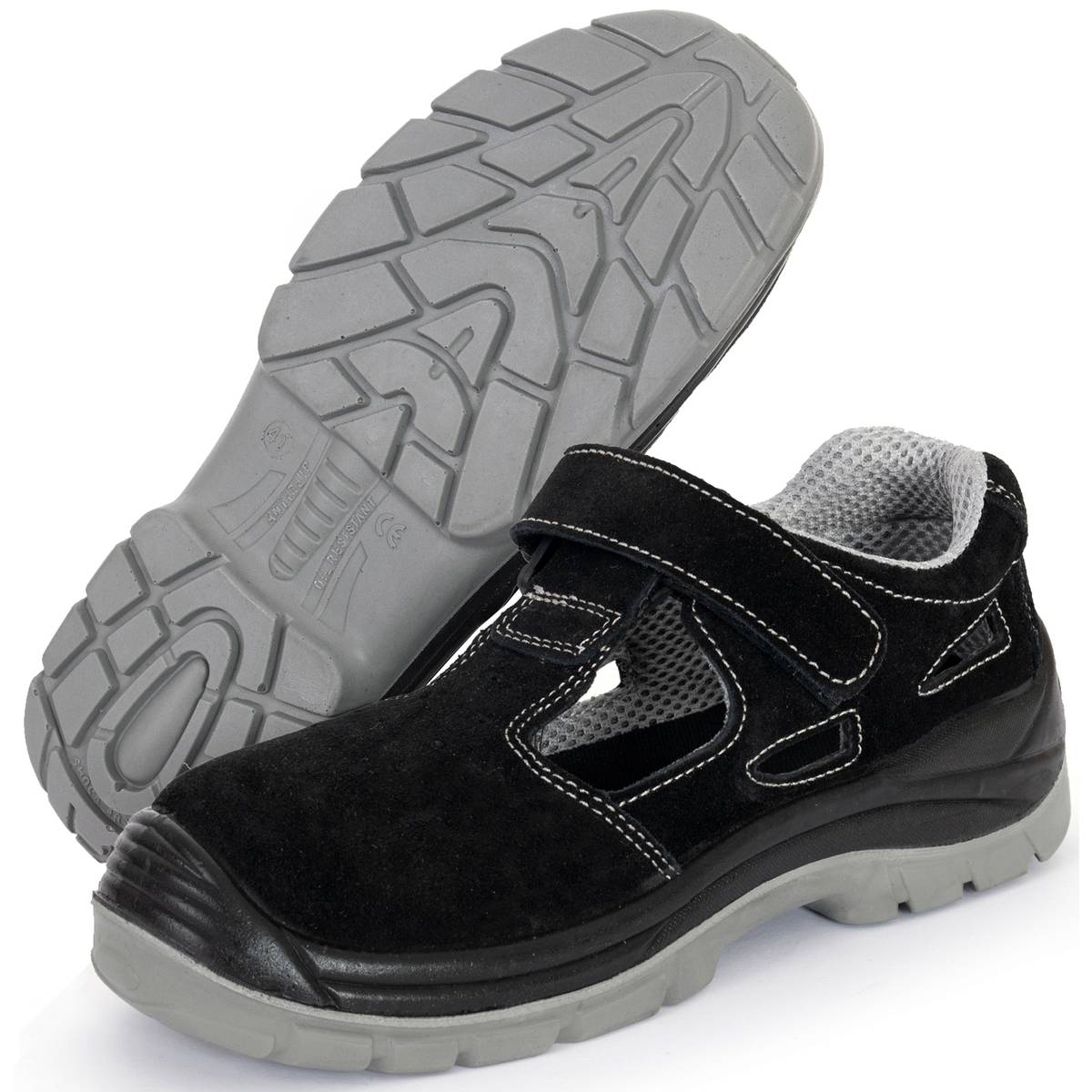 Sandały ochronne KAMARI O1 bez podnoska. Cholewka obuwia wykonana jest ze skóry welurowej, zapięcie na rzep. Podeszwa z dwuwarstwowego poliuretanu PU/PU, antyelektrostatyczna. Warstwa zewnętrzna twardsza, wewnętrzna bardziej miękka. Absorpcja energii w części piętowej. Podeszwa antypoślizgowa. Wyściółka z materiałów o właściwościach higroskopijnych. Głęboki protektor zapewniają wysoką stabilność obuwia i komfort chodzenia. Kategoria O1.