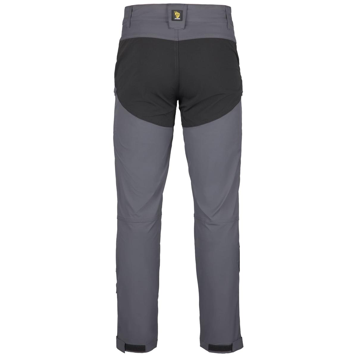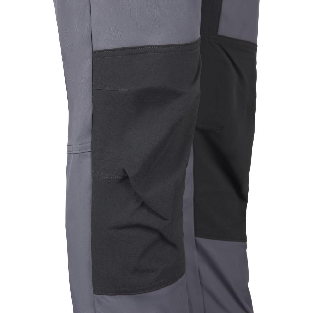 Spodnie wykonane z tkaniny 4 way stretch o składzie 100% poliester i gramaturze 220g/m2 W kolorze szarym z ciemnymi wstawkami na kolanach oraz w tyle. Kieszenie boczne i kieszenie na udach zapinane na suwak. Wentylacja w szwie bocznym, regulowany obwód nogawek, profilowane kolana. Produkt spełnia wymogi normy PN-EN ISO 13688:2013