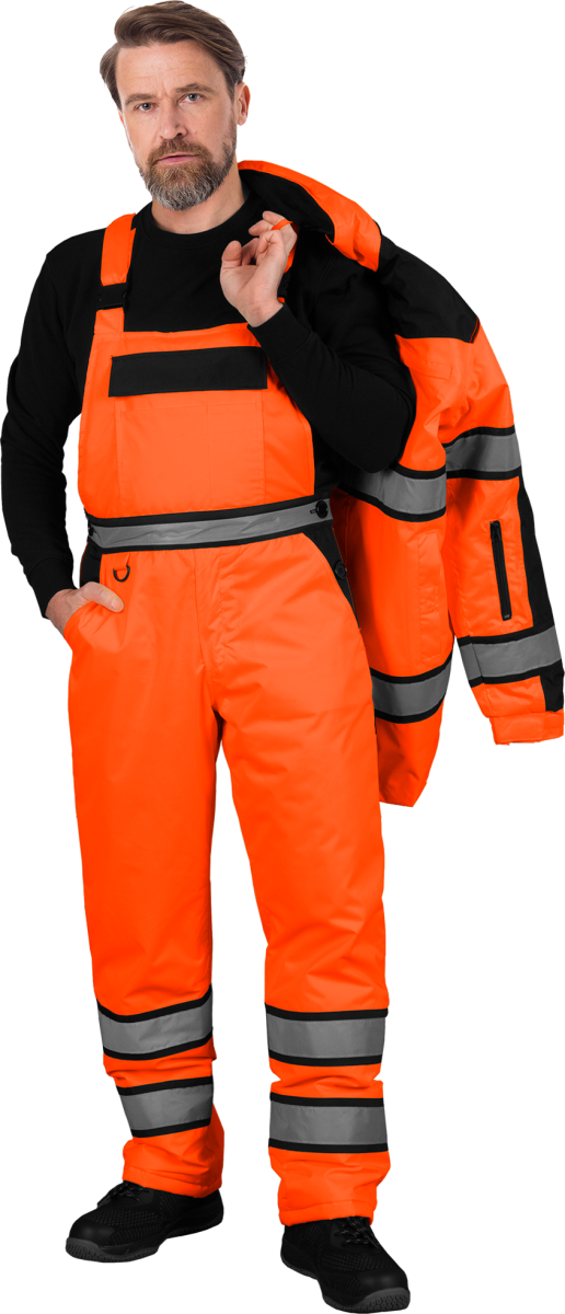 - tkanina we fluorescencyjnym kolorze i pasy odblaskowe zwiększające widoczność