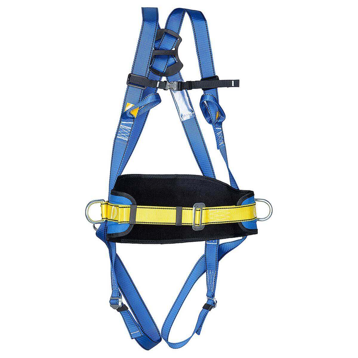 SZELKI BEZPIECZEŃSTWA typ P05 Wykonane z taśmy poliestrowej o szerokości 45 mm, szyte poliestrowymi nićmi. Posiadają klamry stalowe ocynkowane. Regulacja pasa piersiowego i udowego. Tylna klamra zaczepowa, dodatkowo przedni punkt zaczepowy oraz pas do pracy w podparciu z bocznymi klamrami zaczepowymi. Maksymalne obciążenie 140 kg. Spełniają normy: EN361 i EN358. Dopuszczone do pracy w strefach zagrożonych wybuchem. Rozmiar: M-XL Waga: 1120g Producent: PROTEKT